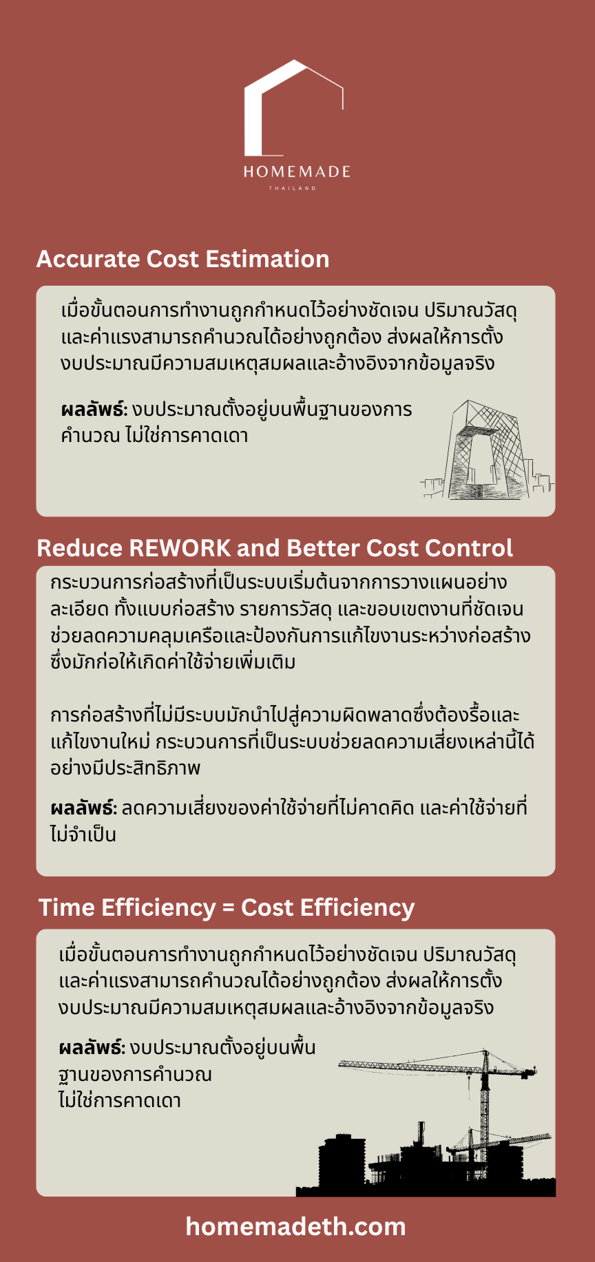 ความเร็วในการก่อสร้างของโฮมเมดไม่ได้เกิดจากการเร่งงาน แต่เมื่อขั้นตอนถูกวางไว้อย่างละเอียด ทีมงานสามารถทำงานได้อย่างแม่นยำและต่อเนื่อง